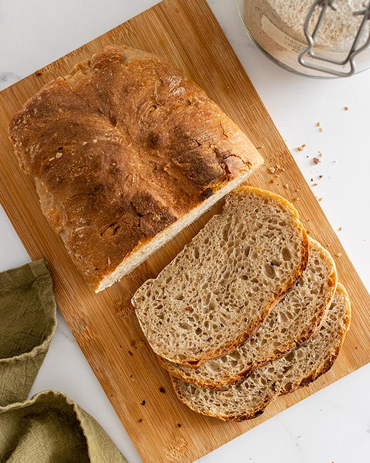 Esta receta de pan casero fácil es infalible. La mejor receta si eres novata como yo porque sale bien a la primera. Si usas harina de trigo el pan quedará más esponjoso pero también puedes hacer un pan semi-integral (con harina de trigo, espelta o centeno) al 50%. Si optas por un pan integral, te quedará una miga menos alveolada pero muy sabroso y nutritivo.