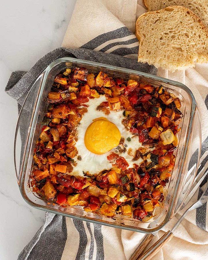 - El pisto ya estaría listo pero a mi me encanta con huevo. Casca 1-2 huevos sobre el pisto y cocina en el Airfryer durante 10 min a 190º